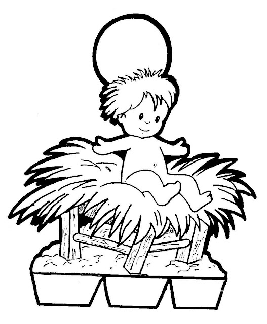 Este bonito niño Jesús forma parte de un nacimiento para recortar con bastantes piezas que como puedes ver estan en blanco y negro y puedes colorear.